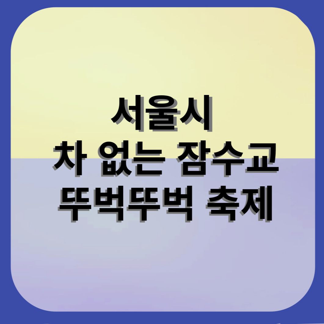 서울시 차 없는 잠수교, 뚜벅뚜벅 축제가 2023년 5월 7일에서 2023년 7월 9일까지 매주 일요일 낮 12시에서 저녁 9시까지 진행됩니다. 한강과 가장 가까운 한강 위의 축제입니다. 놀며, 쉬며, 걸으며 멋진 한강 노을까지 감상할 수 있습니다.